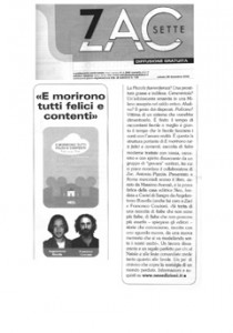 È finito il tempo di raccontarsi favole o meglio è giunto il tempo che le favole facciano i conti con l’amara realtà. È questa la I struttura portante di E morirono tutti felici e contenti, raccolta di fiabe moderne trattate con ironia, sarcasmo e con spirito dissacrante da un gruppo di “giovani” scrittori, tra cui ci piace ricordare il collaboratore di Zac, Antonio Pizzola.