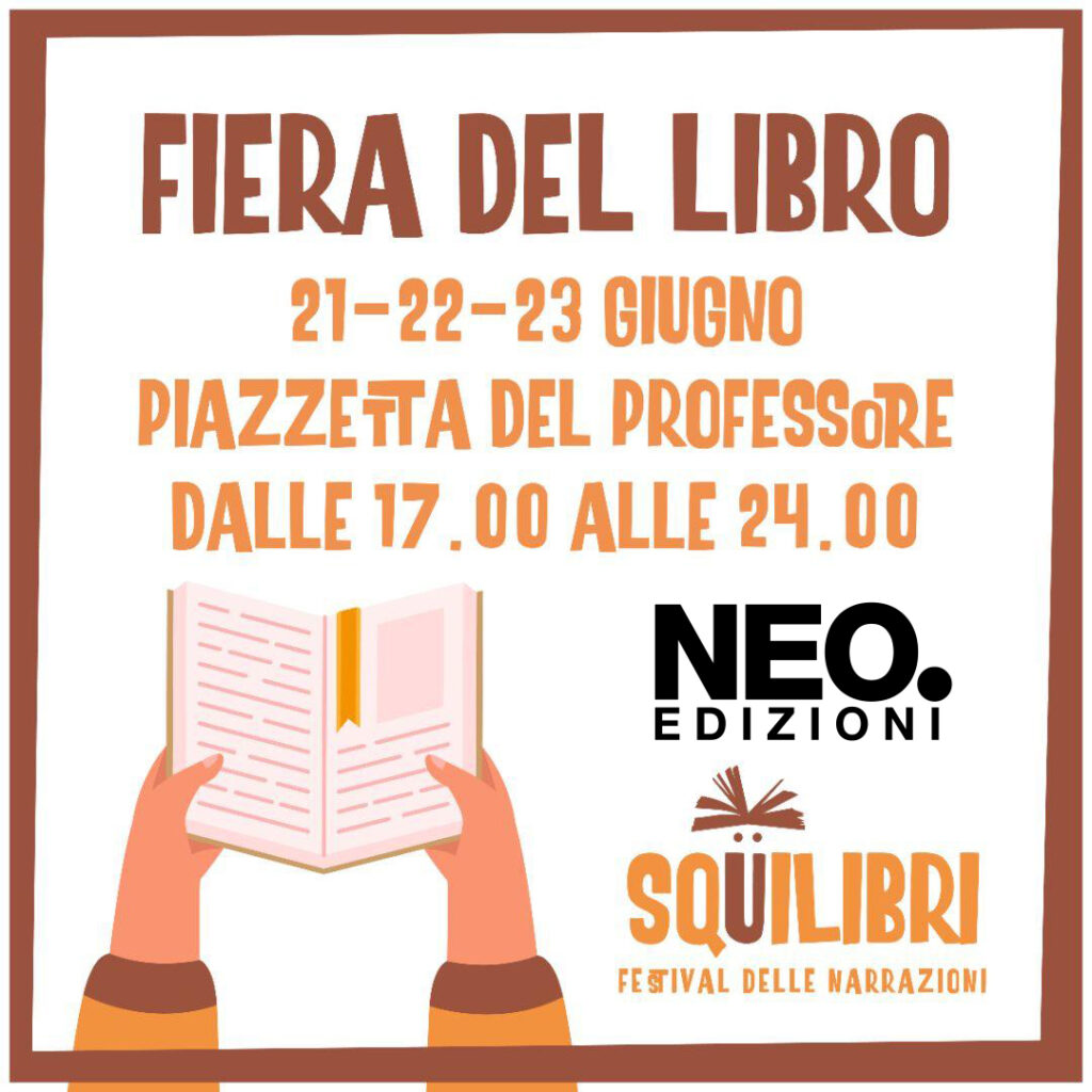– giovedì 15 maggio – ore 18.00 – “Dall’Abruzzo al mondo – Lo sguardo di sei case editrici abruzzesi che guardano lontano”, chiacchierata e aperitivo gagliardo insieme ai colleghi Edicola Ediciones, Ianieri Edizioni, RVM HUB Edizioni, Radici Edizioni, Textus Edizioni e chiaramente la Neo. Edizioni.